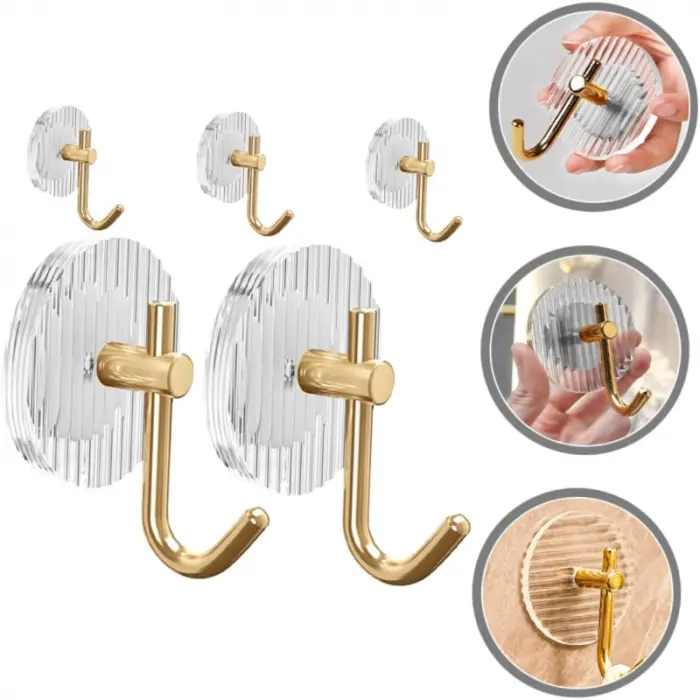 El gancho de acrilico sin perforaciones se puede pegar firmemente en ventanas, espejos, vidrio, metal u otras superficies no porosas, puede satisfacer sus diferentes necesidades, muy conveniente para organizar el baño, cocina, dormitorio, oficina, etc.